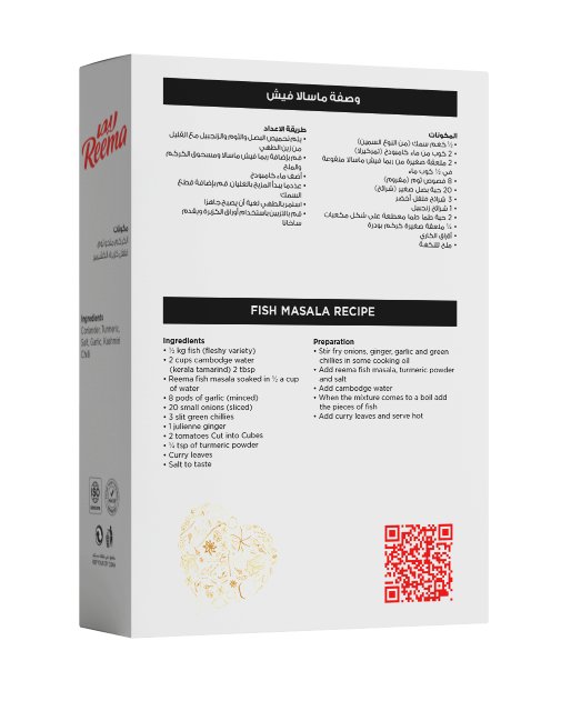Reema’s fish masala mix is a 160 gm pack of 1 that is a blend of aromatic herbs and spices that enhance the savor of any fish dish. These masala mix spices are harvested from a natural process from Kerala’s finest farms after which they are sealed and packed by Smart Foods distributors under quality standards to preserve their freshness and flavor. Used extensively in Indian and Asian cuisine for a spicy, tangy, and mouthwatering flavor. Can go well with any kind of fish. Goes well when served with rice or Indian/Arabic breads.