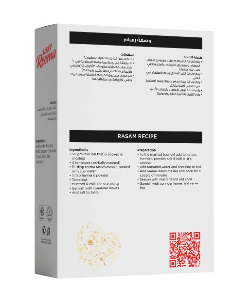 Reema’s rasam masala mix is a 100 gm pack of 1 that is a blend of asafoetida, toor dal, coriander, cumin, black pepper, salt, and turmeric that enhance the flavor of rasam or Indian spice soup preparation. This masala mix has spices that are harvested from a natural process at Kerala’s finest farms after which they are sealed and packed by Smart Foods distributors under quality standards to preserve its freshness,✅[Color], and flavor. This rasam masala mix is used to make tasty rasam preparation and served with steamed rice, fried fish or as a tasty health drink for digestion.
