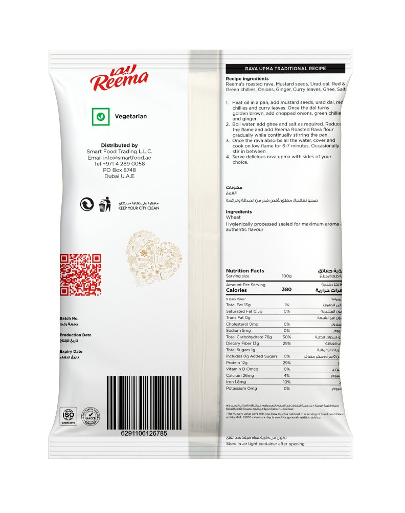 Reema’s roasted rava 1 kg pack of 1 is made from 100% all-natural granulated wheat that is grown from the finest farms in Kerala where they are roasted to create a mouth-watering and very aromatic final product. This roasted rava can be used to make the best breakfast dishes, cakes, halwas, sweets and used to make other batters.